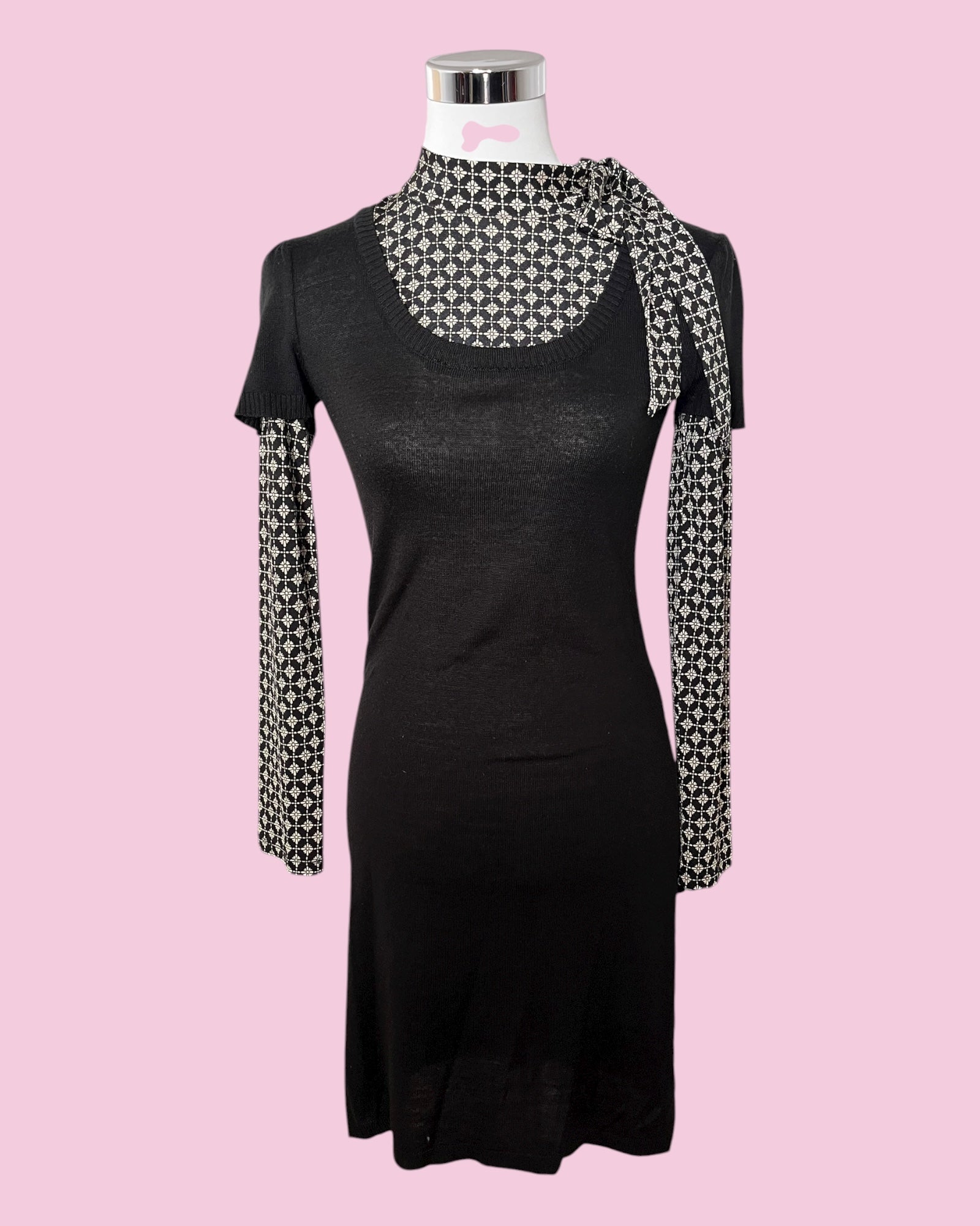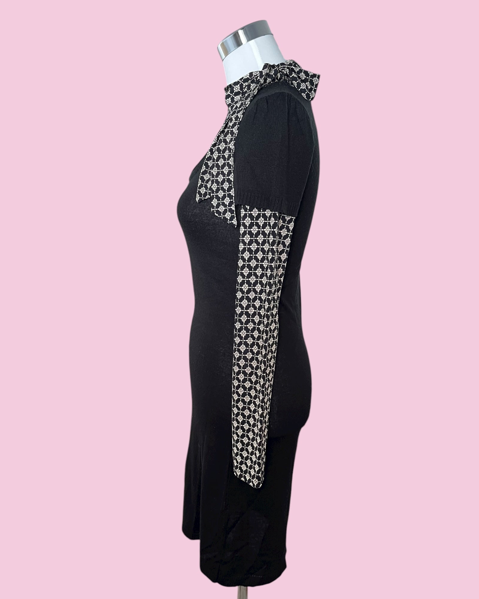 Vintage Knit Dress mit Print Details & Scarf Collar Orsay S/M
